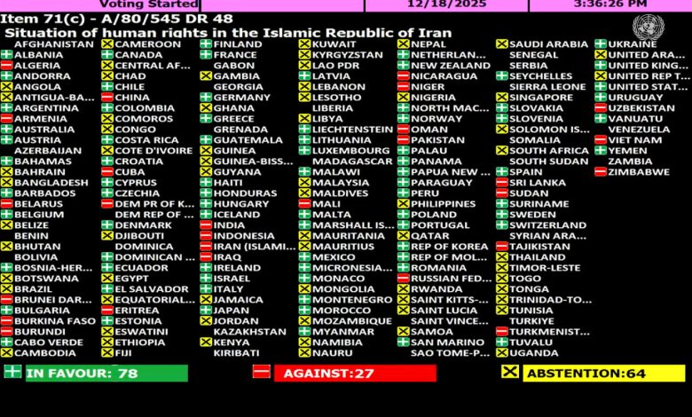 قطعنامه ضدایرانی کانادا درسازمان ملل؛ آرای مخالف و ممتنع بیش از موافق